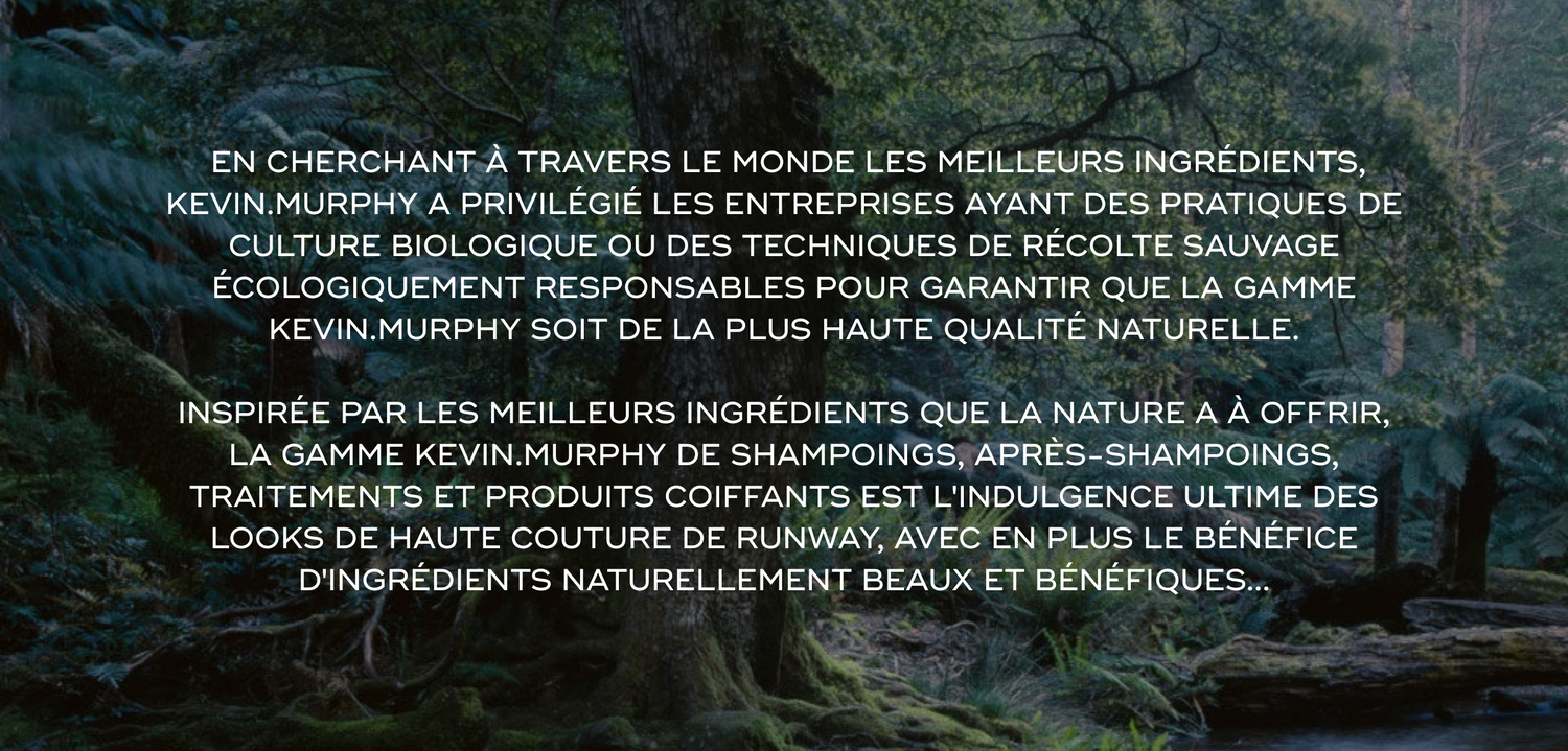 Combinant des connaissances scientifiques de haute technologie avec les meilleurs ingrédients naturels disponibles, les produits KEVIN.MURPHY fournissent les outils pour recréer des looks de défilé de haute couture en salon ou à la maison, tout en restant toujours respectueux de l'environnement.